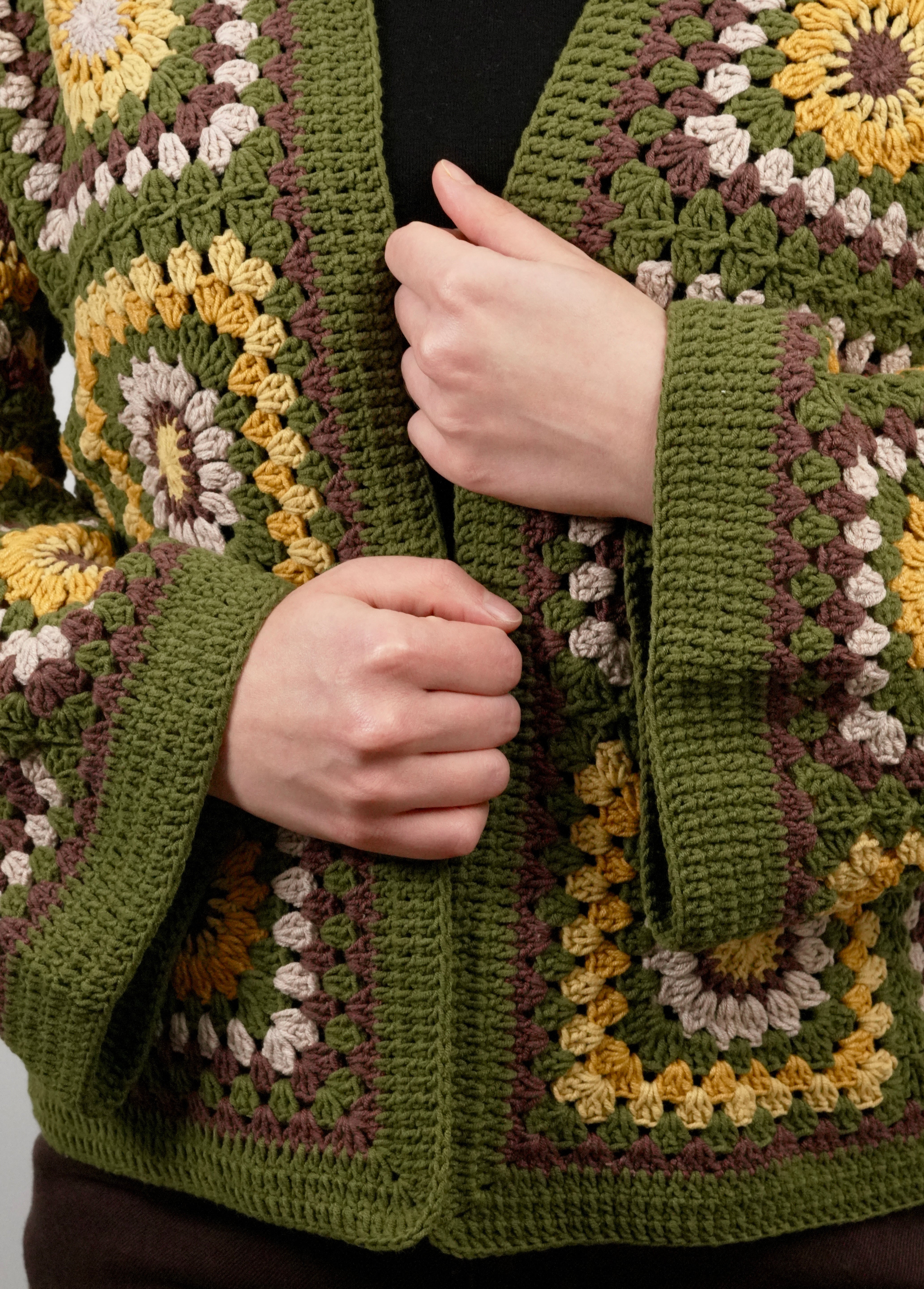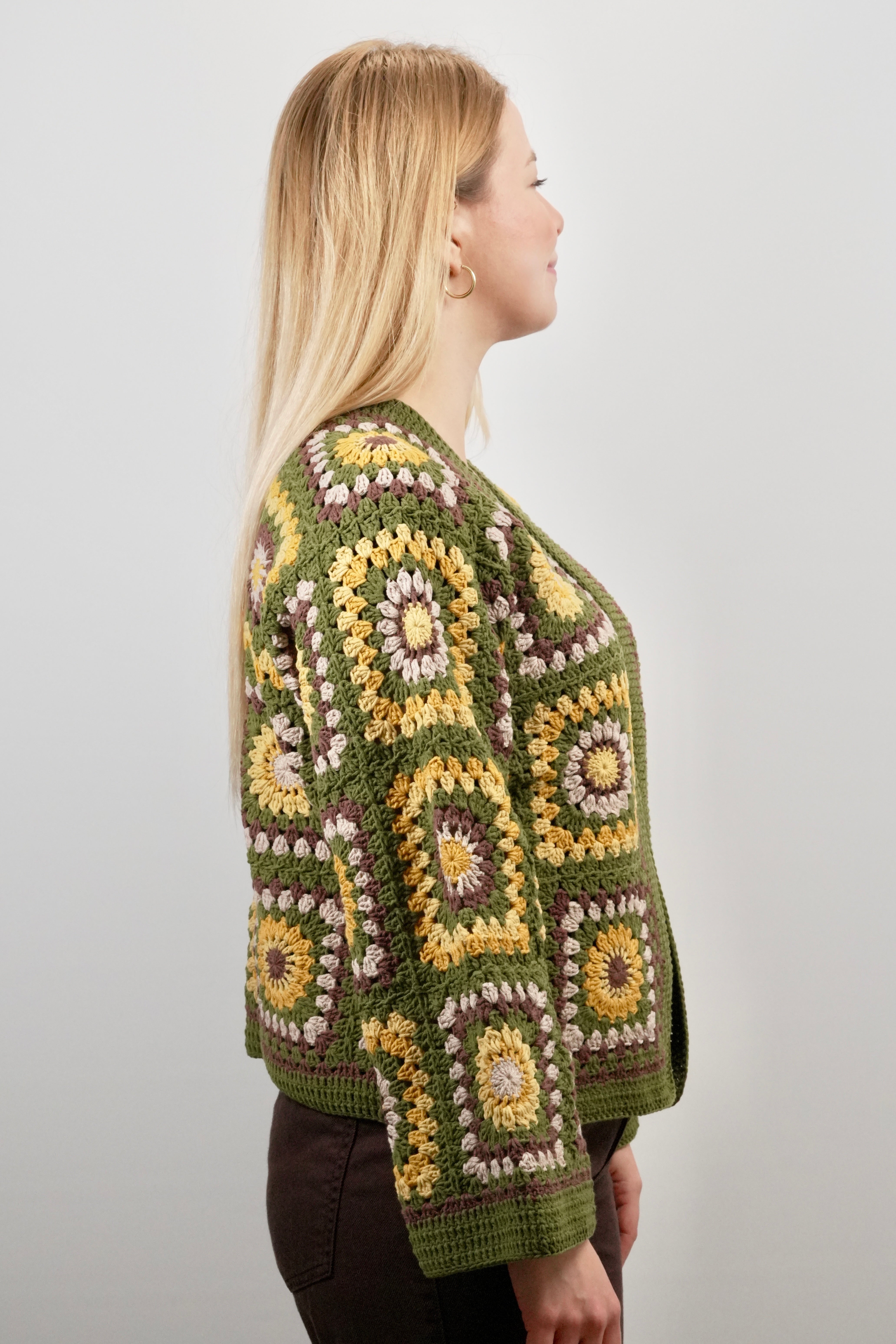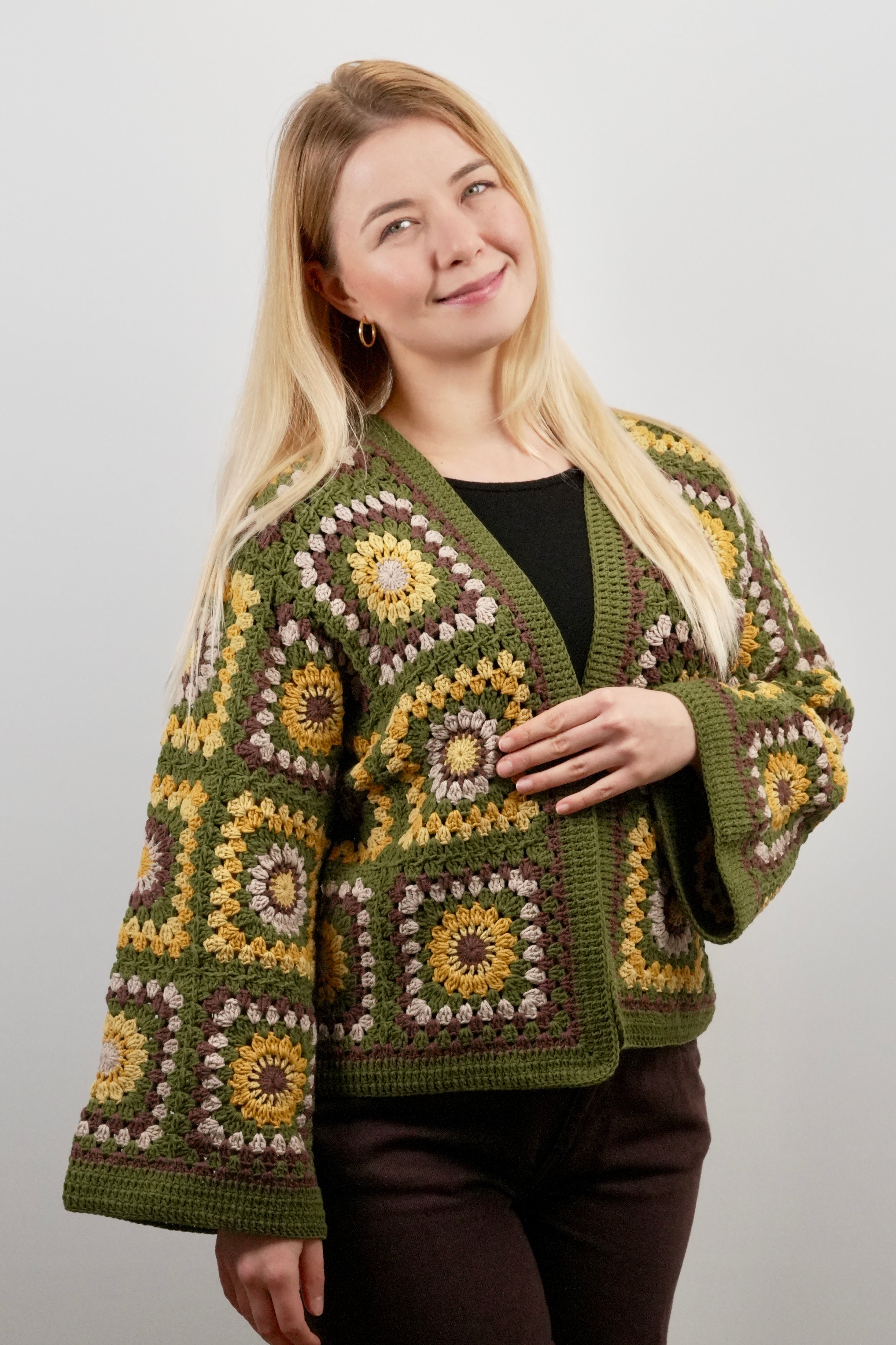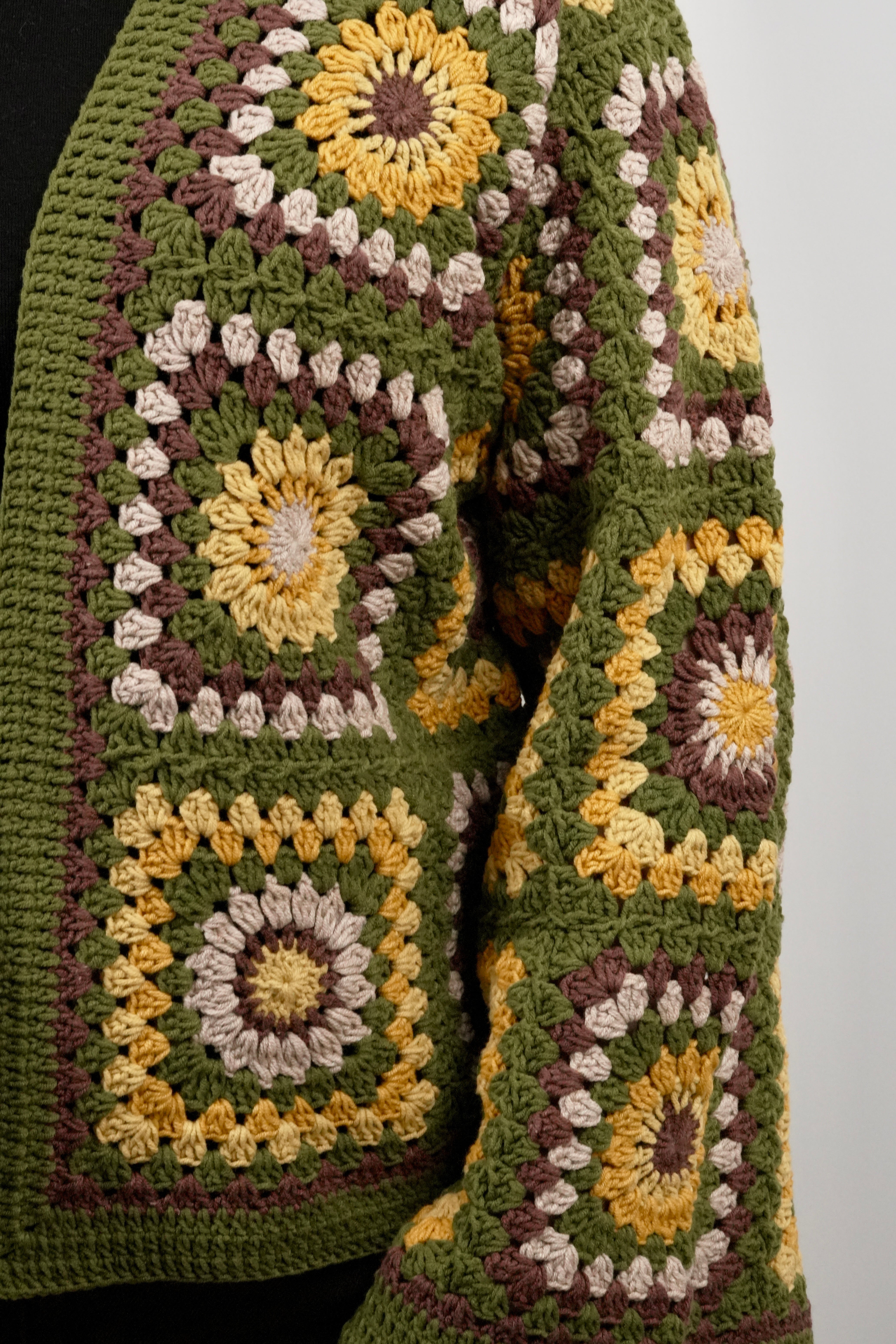 Wrap yourself in color and craft with the Boho Mosaic Crochet Cardigan – a timeless piece that celebrates handmade artistry. Each cardigan is individually crocheted from 100% organic cotton, showcasing intricate granny-square motifs and rich bohemian hues that make every piece unique.