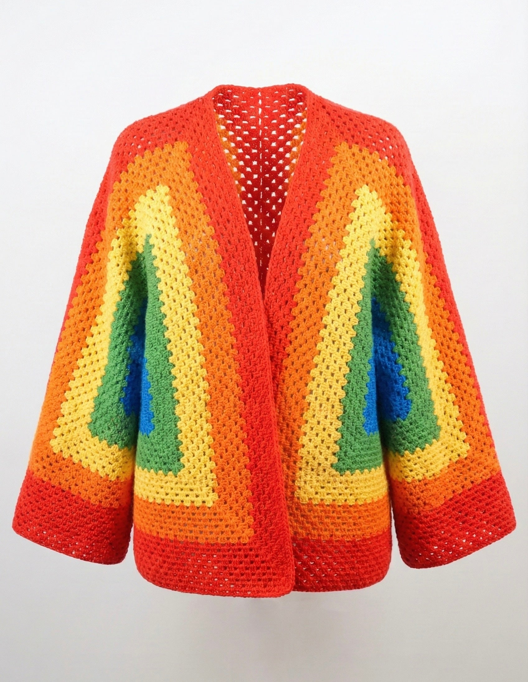 Handmade organic cotton crochet rainbow dream crochet cardigan by Ana Chic