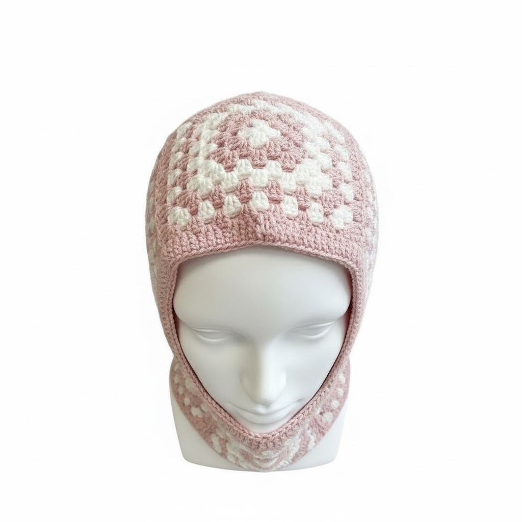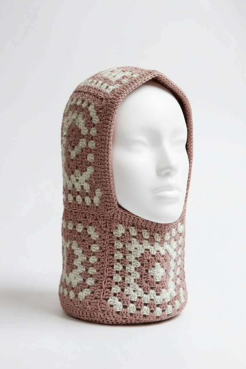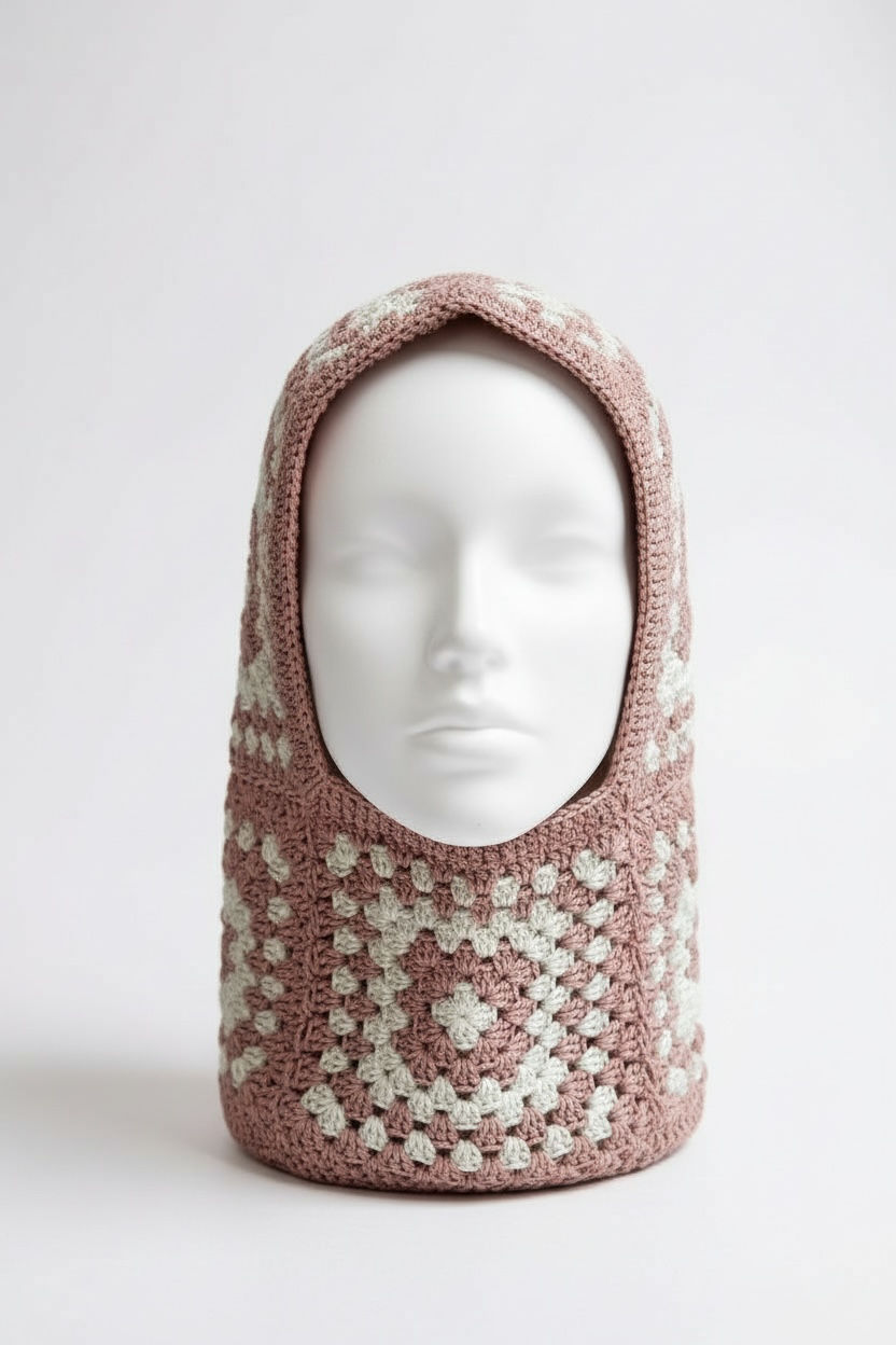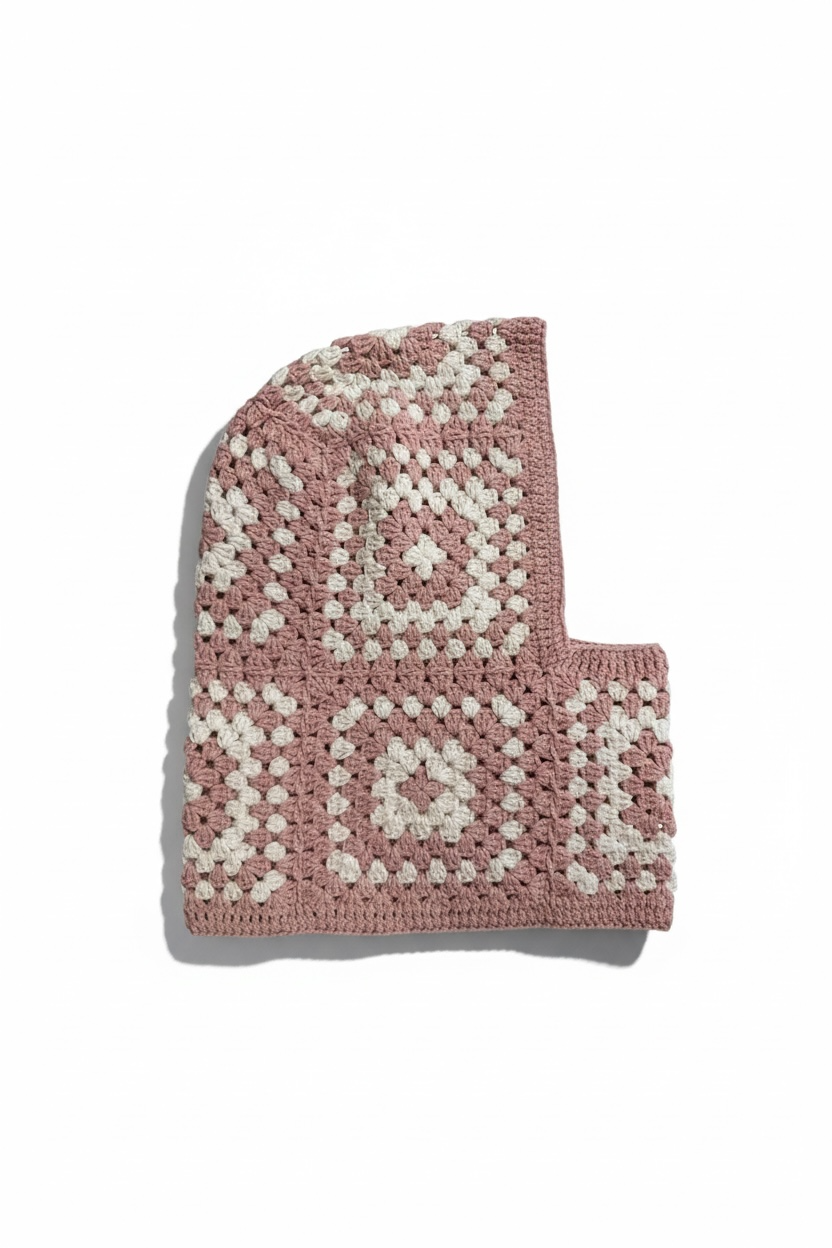 Handmade crochet balaclava crafted from 100% organic cotton yarn. Soft, breathable and gentle on the skin — perfect for all-day wear. Each piece is created in small batches with unique colour combinations, so every balaclava feels one of a kind. Ideal for cosy winter days, festival looks or adding a playful handmade touch to your outfit.