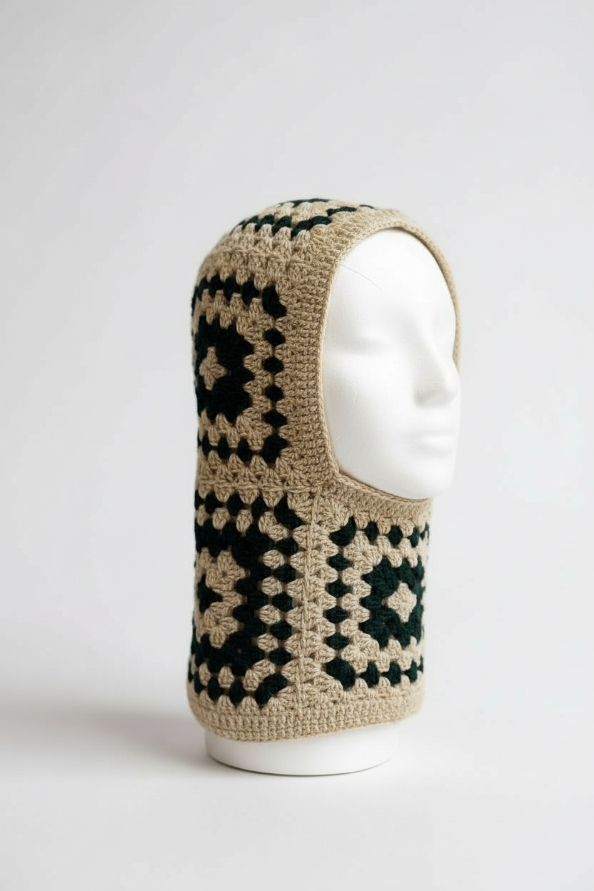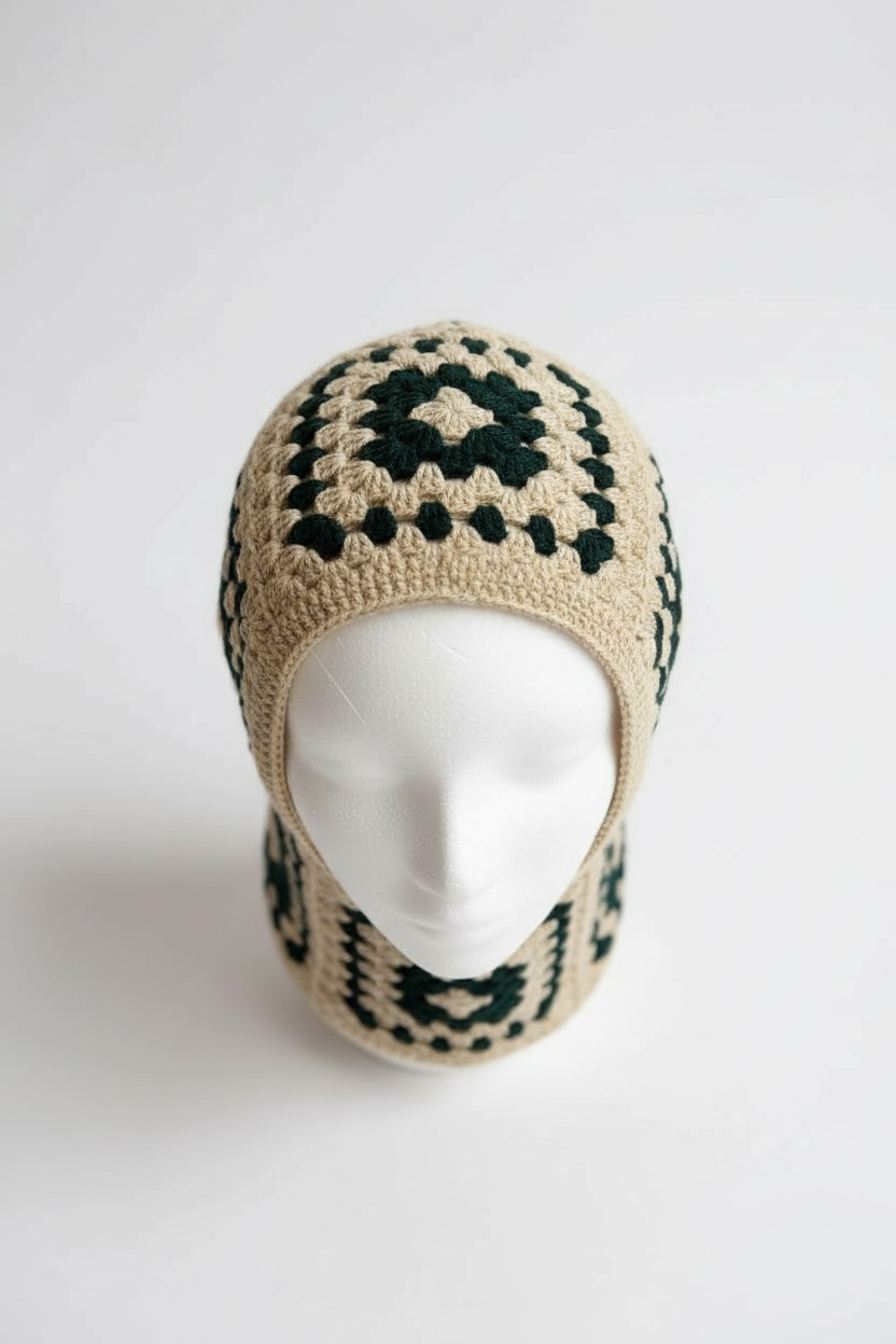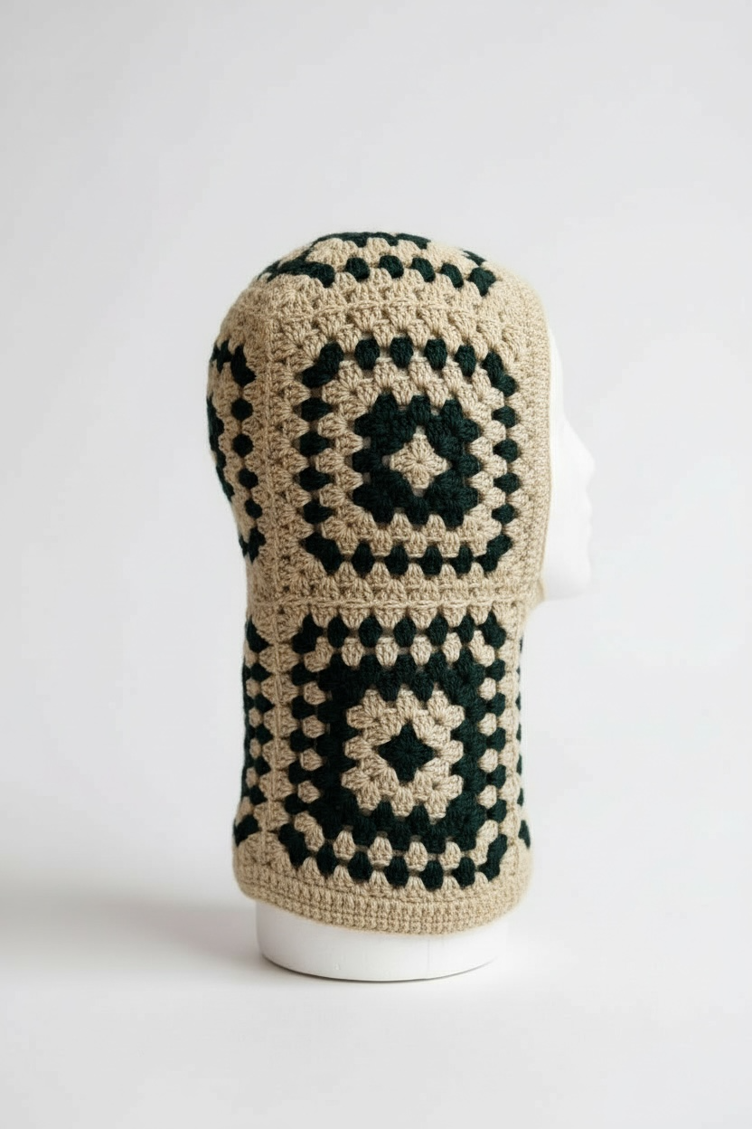Handmade crochet balaclava crafted from 100% organic cotton yarn. Soft, breathable and gentle on the skin — perfect for all-day wear. Each piece is created in small batches with unique colour combinations, so every balaclava feels one of a kind. Ideal for cosy winter days, festival looks or adding a playful handmade touch to your outfit.