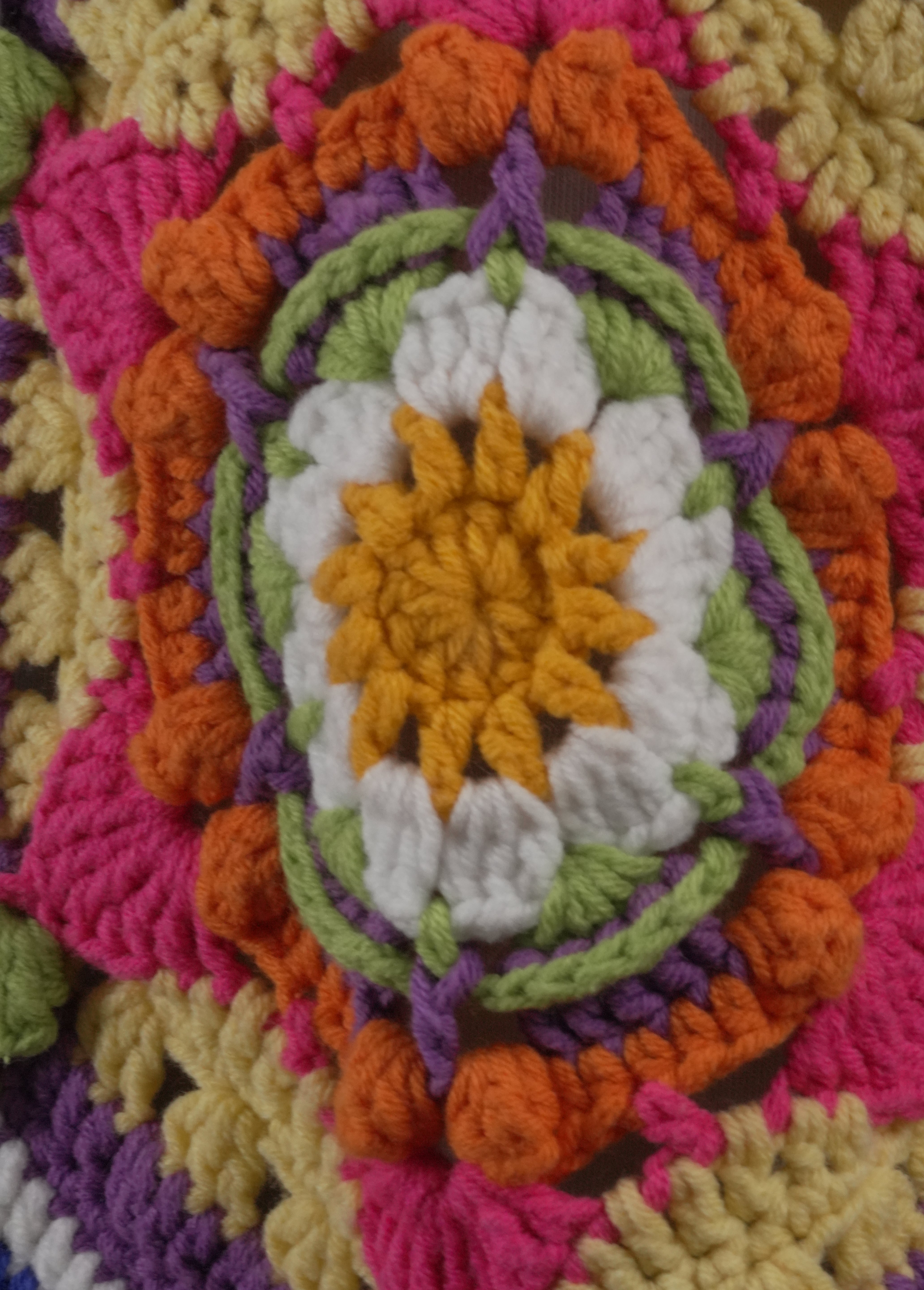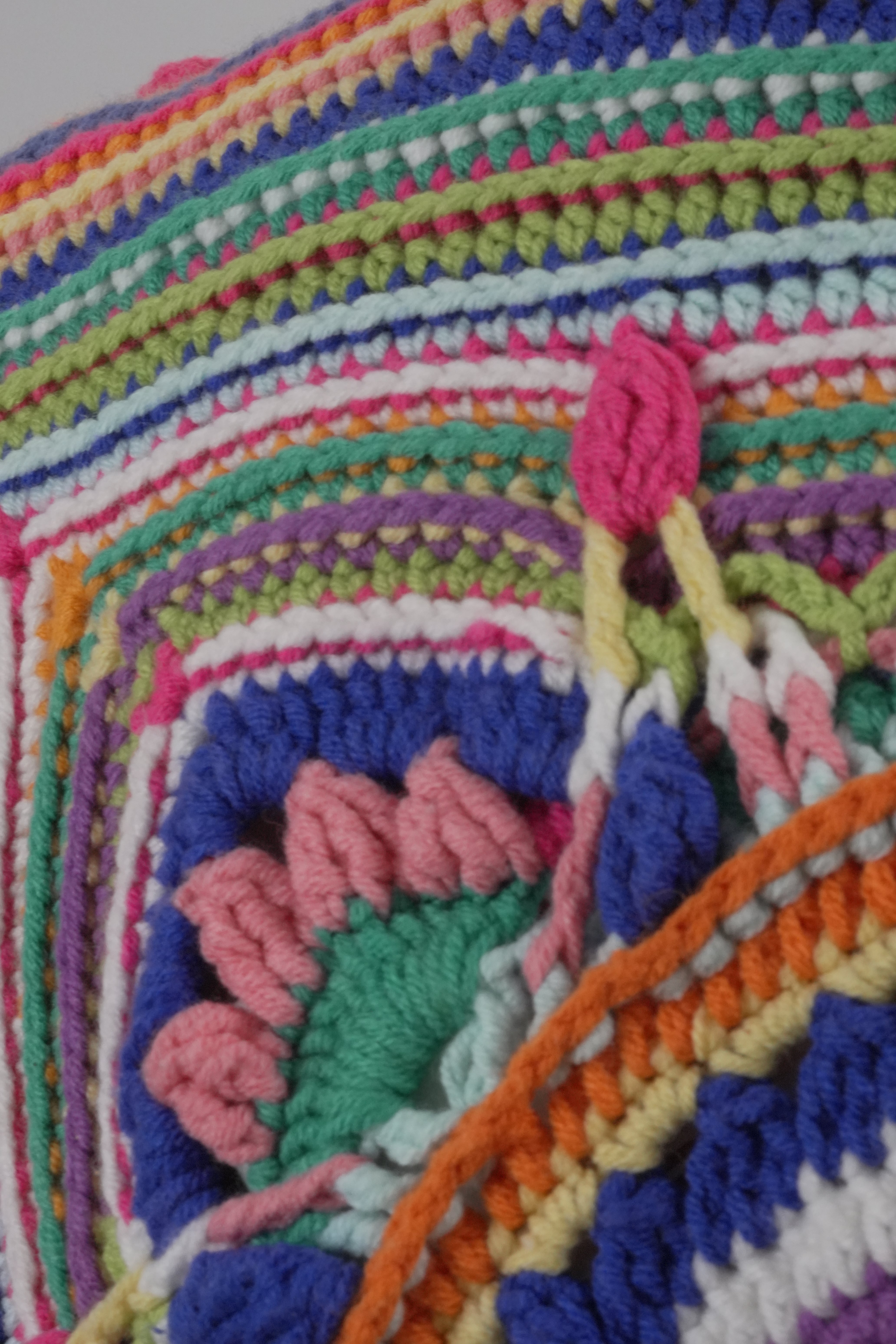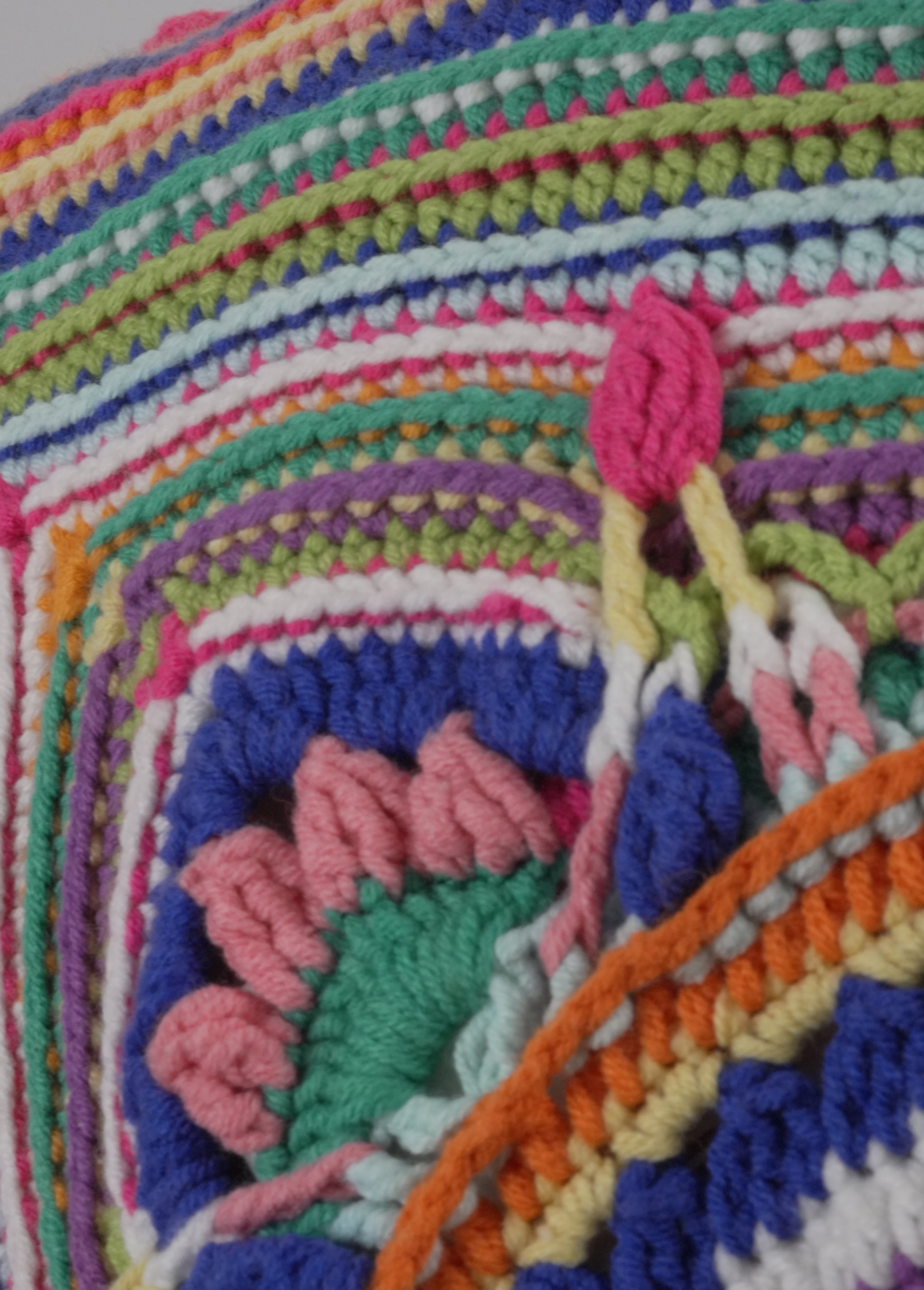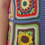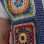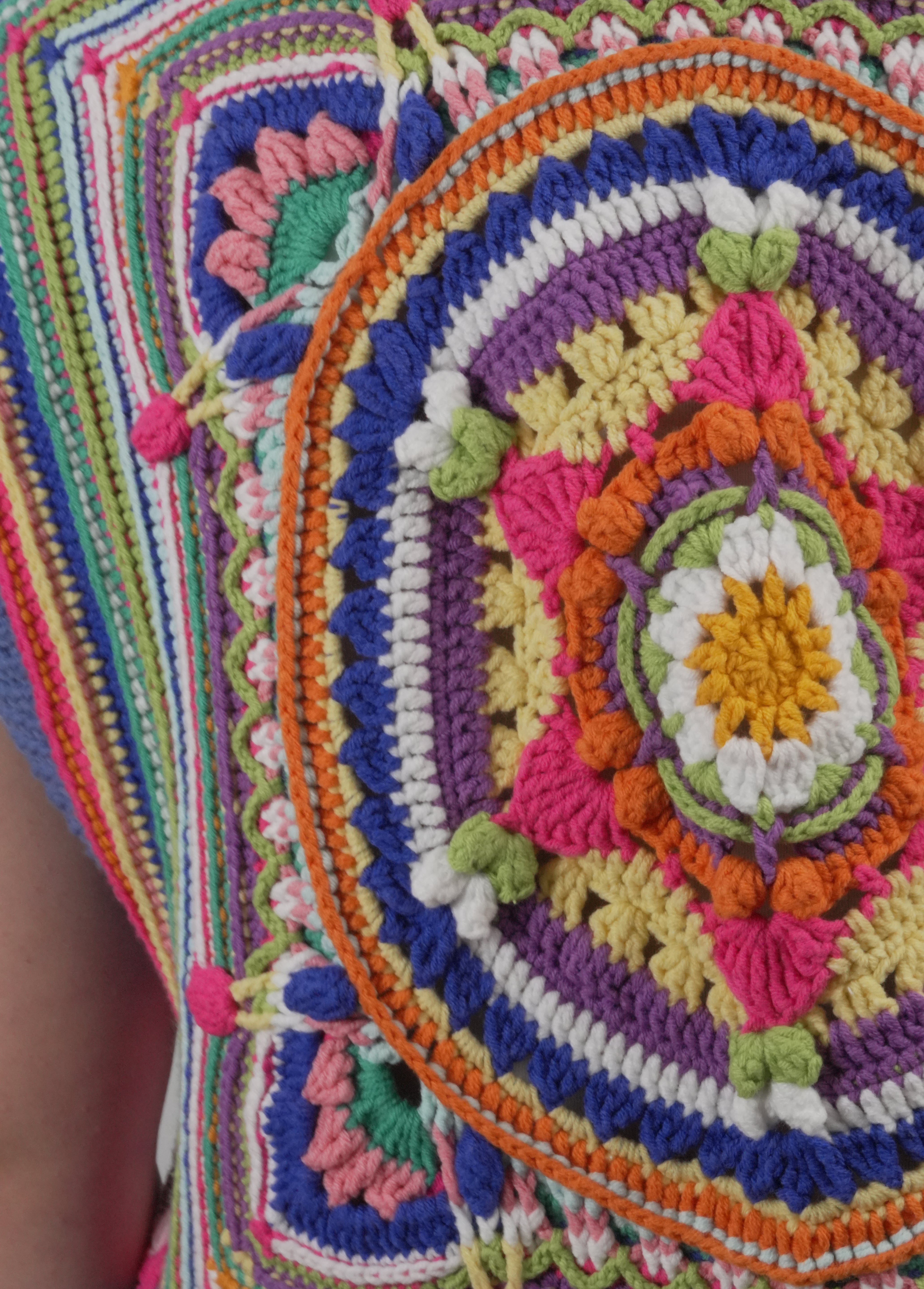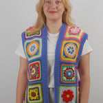 Celebrate colour, craft, and creativity. The Bloomia Vest is a joyful patchwork of vibrant crochet motifs on the front, crowned with a stunning statement medallion at the back. It’s bold, playful, and made to stand out.