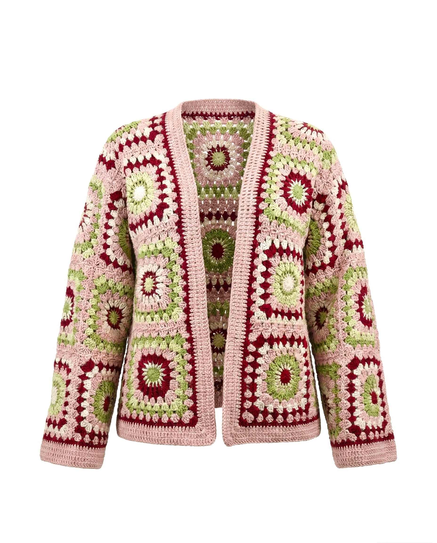 Wrap yourself in color and craft with the Boho Mosaic Crochet Cardigan – a timeless piece that celebrates handmade artistry. Each cardigan is individually crocheted from 100% organic cotton, showcasing intricate granny-square motifs and rich bohemian hues that make every piece unique.
